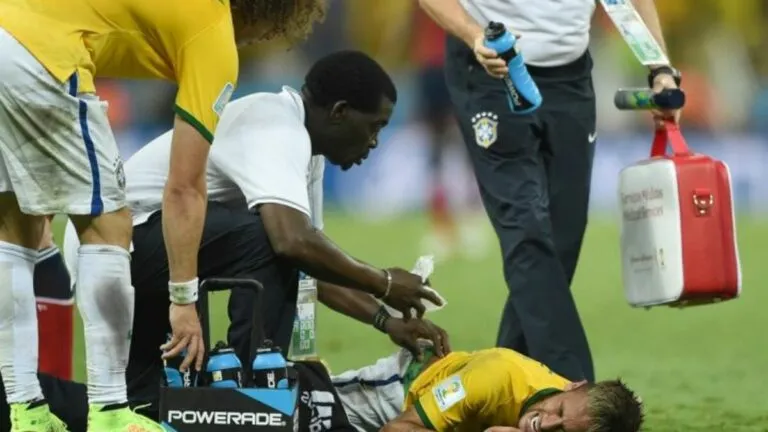 «Quand j’ai ressenti cette douleur au dos, je me souviens que Marcelo a voulu m’aider à me relever, mais j’avais vraiment mal. Ensuite j’ai essayé de bouger mes jambes, mais je n’ai pas pu. Je n’avais pas la force pour me relever. Je leur ai dit : ‘Je ne peux pas, je ne peux pas, je ne sens plus rien’ (…) le docteur m’a dit : ‘J’ai deux nouvelles, une bonne et une mauvaise.’ Je lui ai demandé de me donner la mauvaise d’abord. Il a répondu : ‘La mauvaise, c’est que ta Coupe du monde est terminée.’ J’ai éclaté en sanglots, en lui disant : ‘Et la bonne ?’ Il a dit : ‘A deux centimètres près, tu ne marcherais plus’. J’ai pleuré, j’étais triste de quitter le Mondial, triste d’être blessé.» a expliqué l’Auriverde.